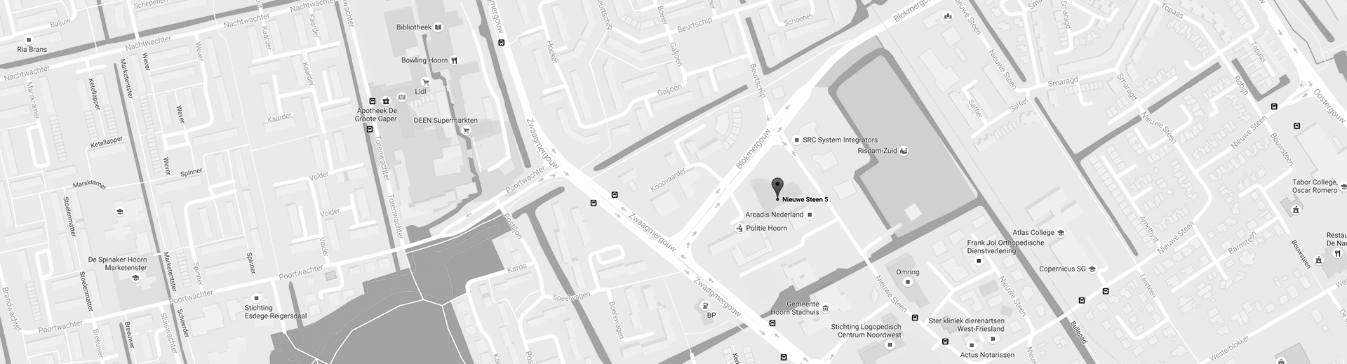 Ons kantoor is gevestigd op de eerste etage van het fraai geoutilleerde kantoorpand aan de Nieuwe Steen 5 te 1625 HV Hoorn. Er is voldoende parkeergelegenheid.